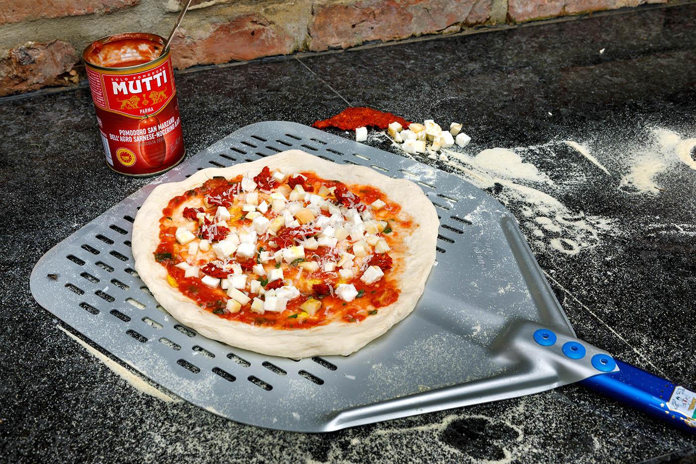 Whilst your wood-fired oven is getting hot, you can prepare your pizza with your choice of toppings. Make sure your pizza base has no breaks or wholes for any liquid or moisture to escape.