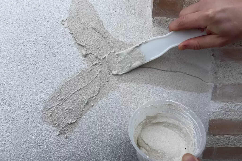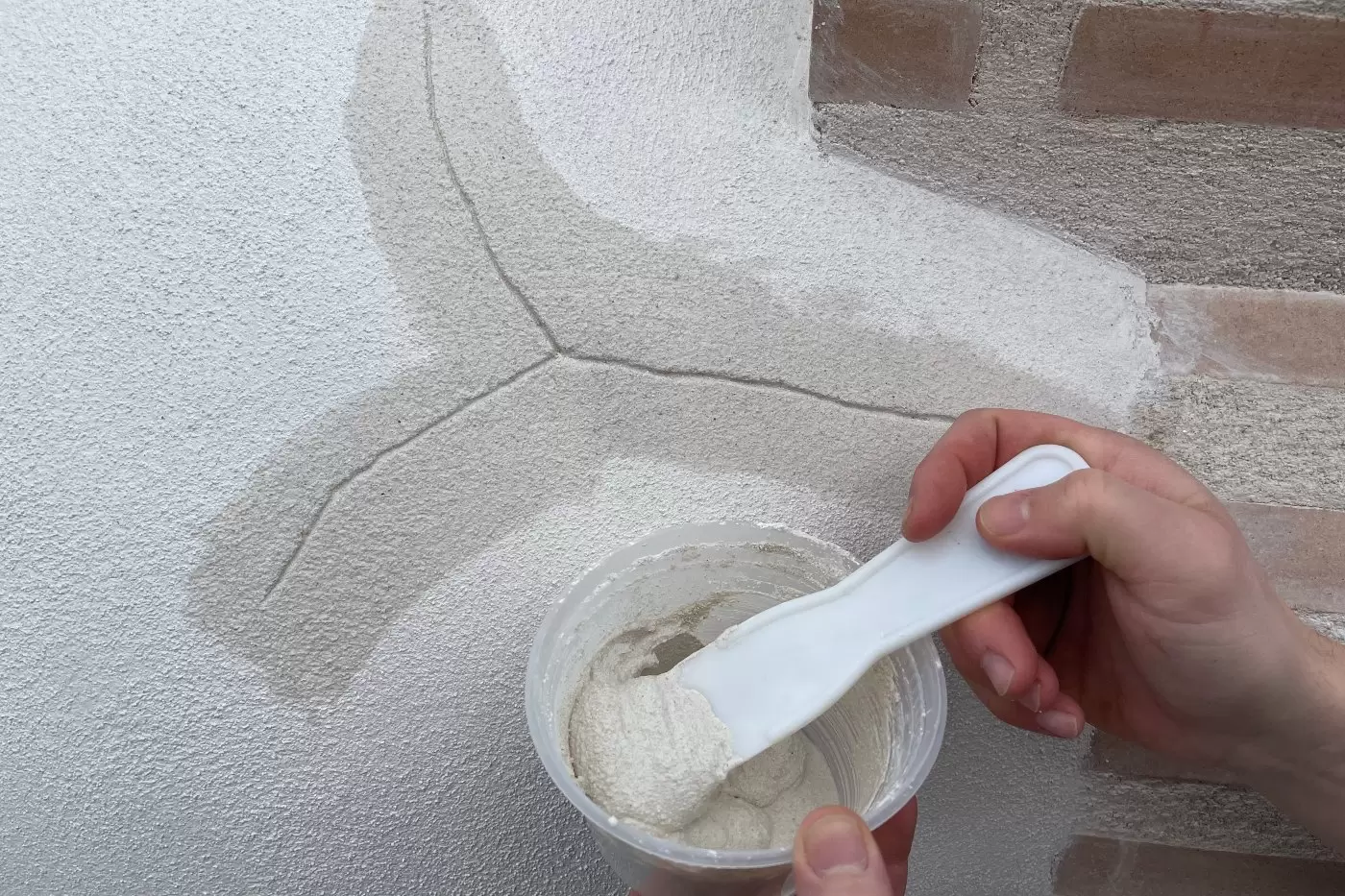 Using a spatula, fill the crack with the repair mix, ensuring you spread it evenly.